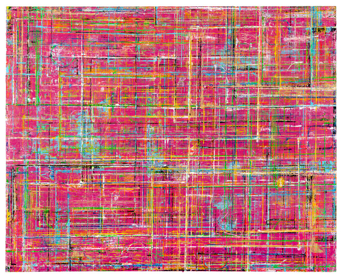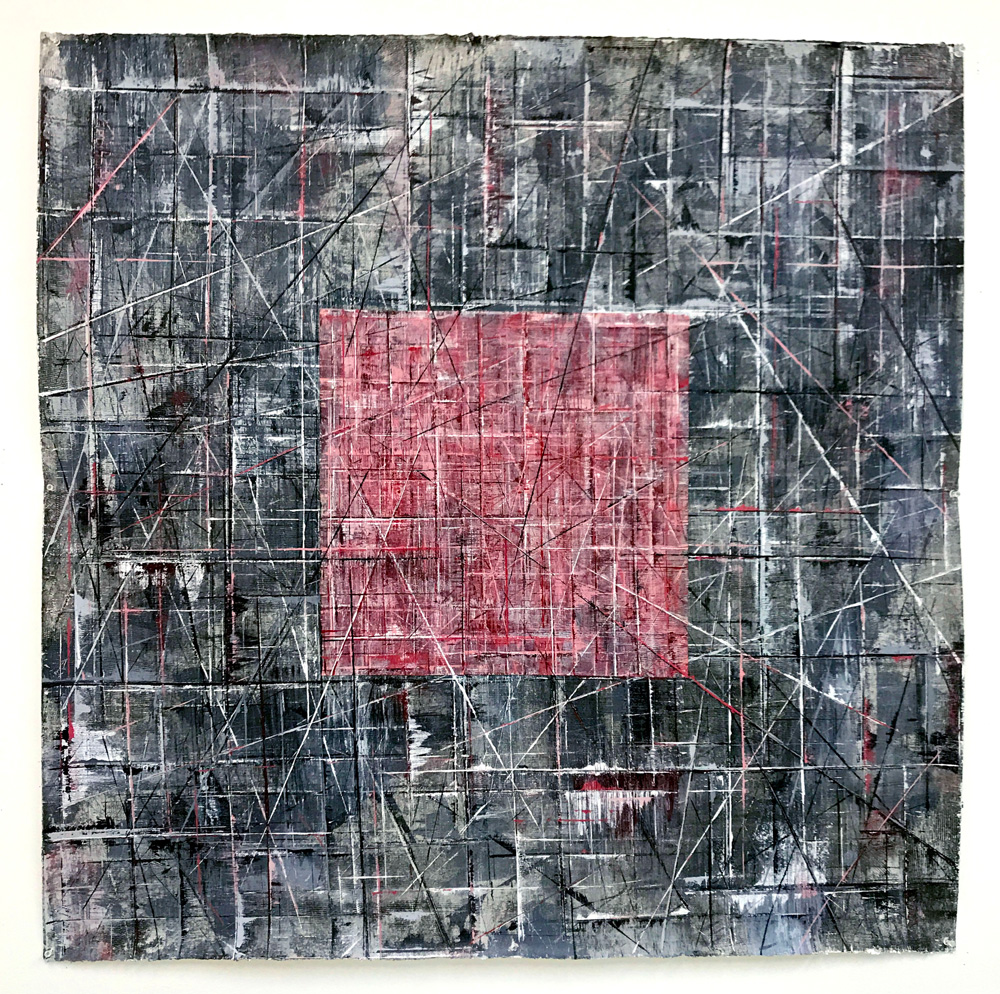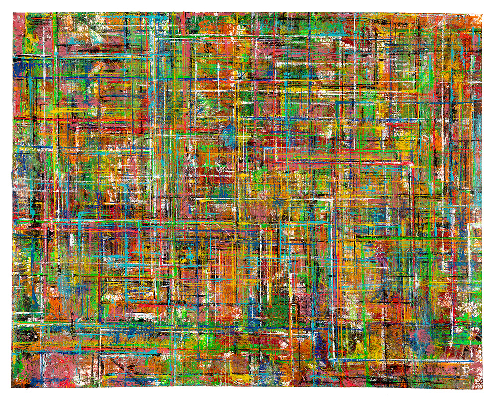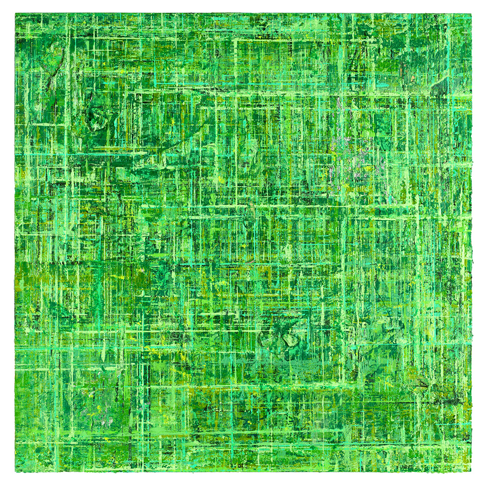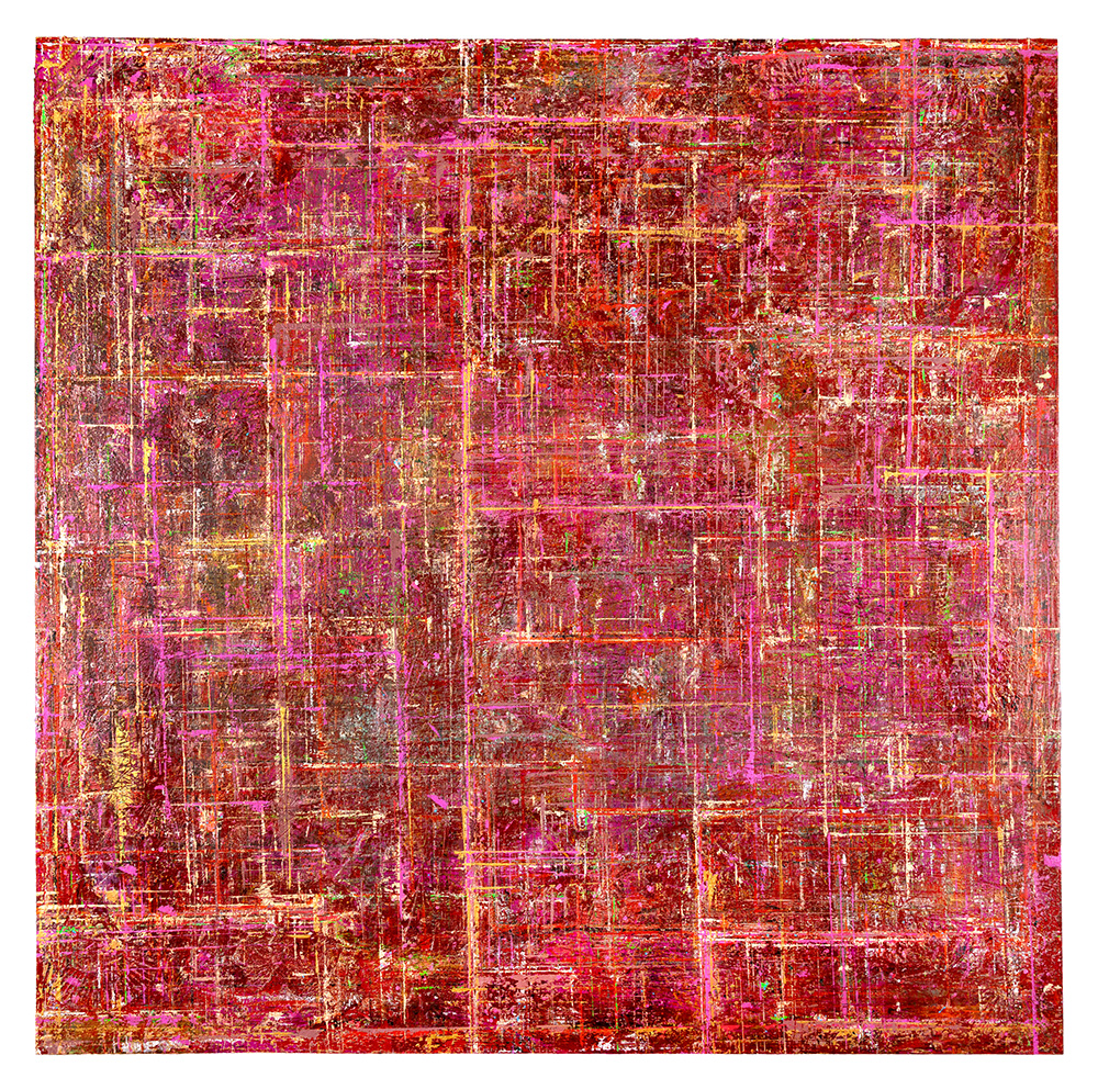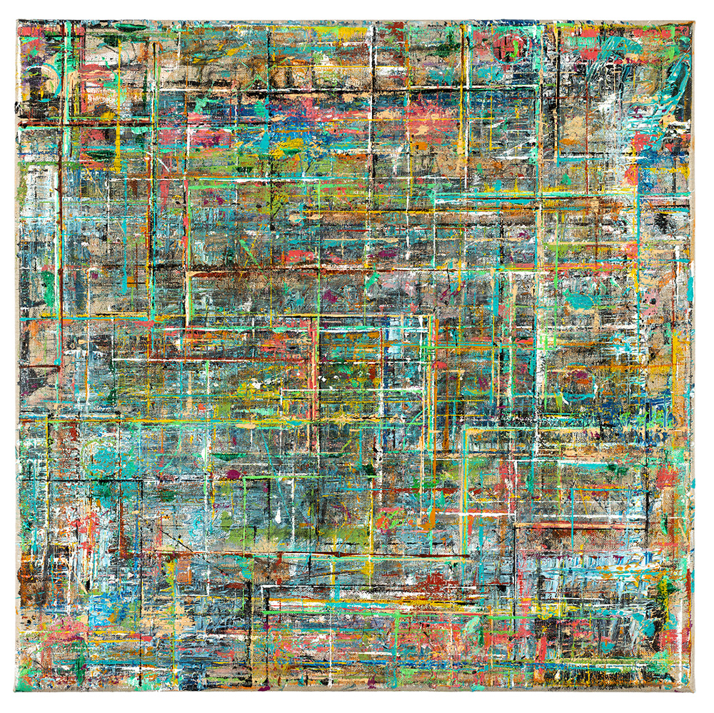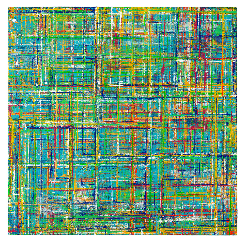 Gridlock is an exploration of layered grids and vibrant colors, emerging from Allan’s fascination with the tension between structure, freedom, and joy amid chaos. The series echoes woven fabric, aerial city views, flickering digital screens, and deteriorating building facades. The abundance of layers creates paintings that invite the viewer to linger and feel the interplay of color against color, with infinite possibilities for exploration and discovery.