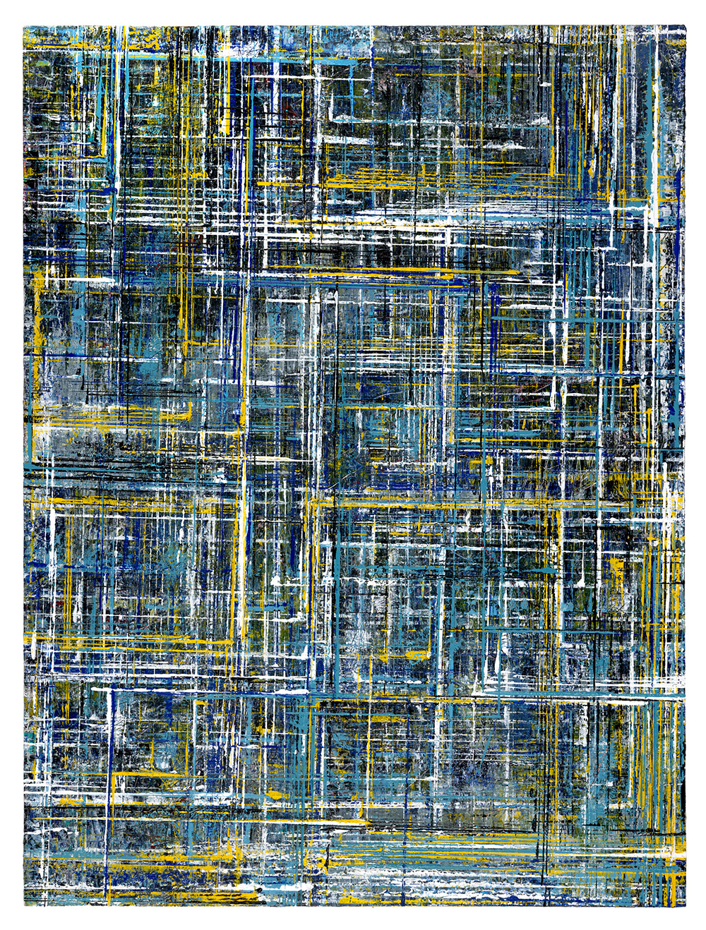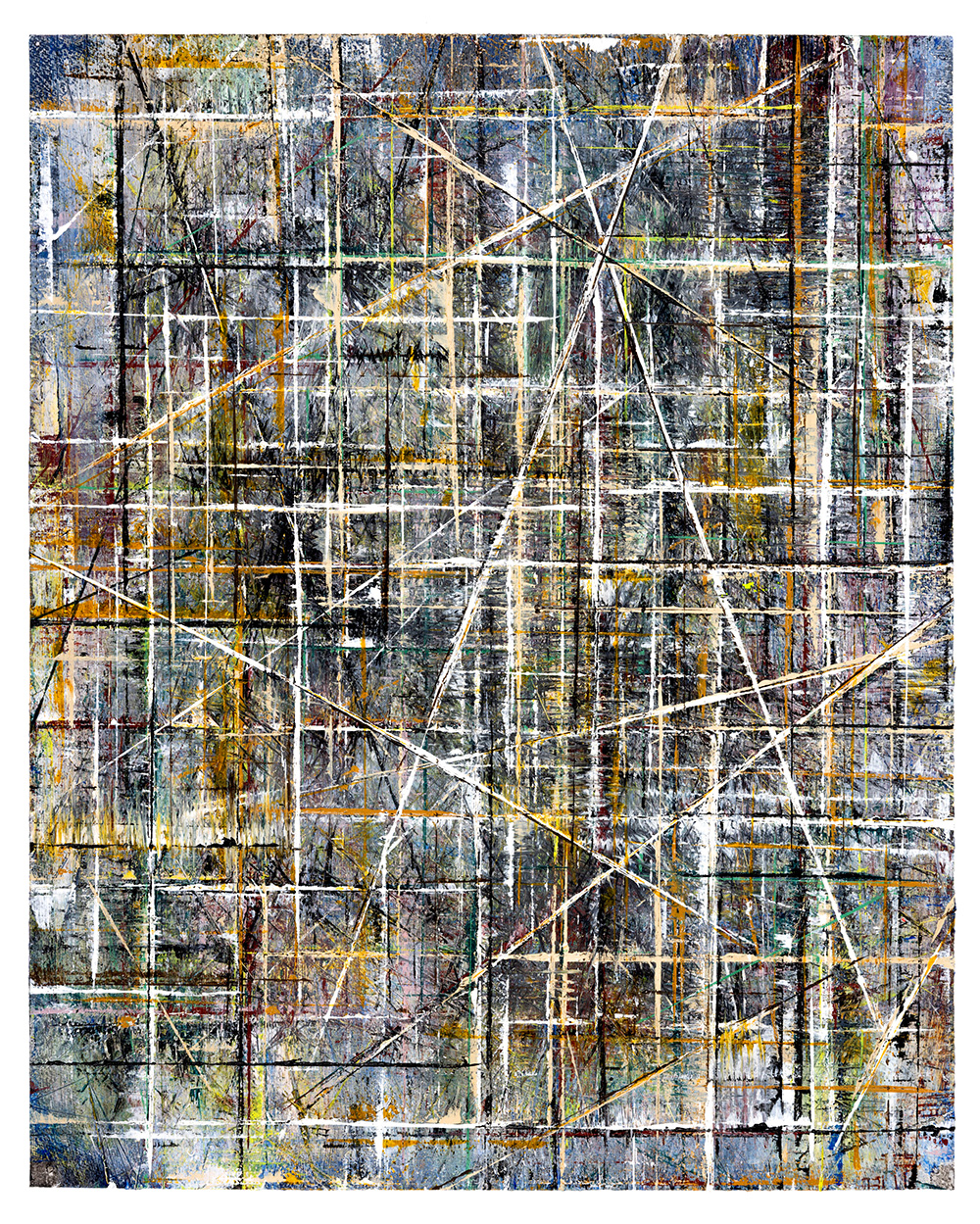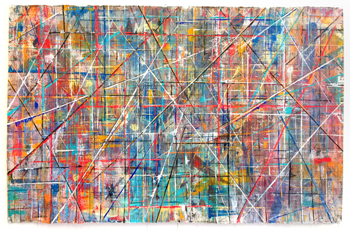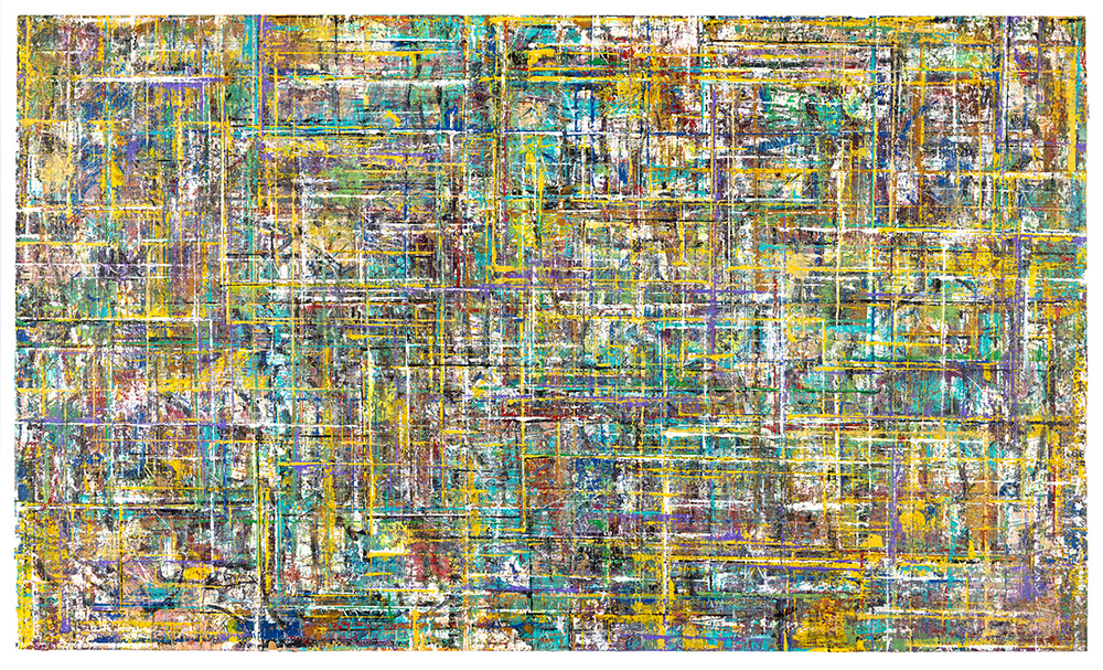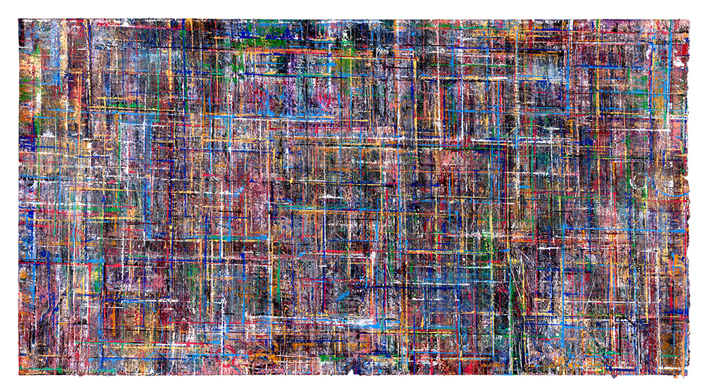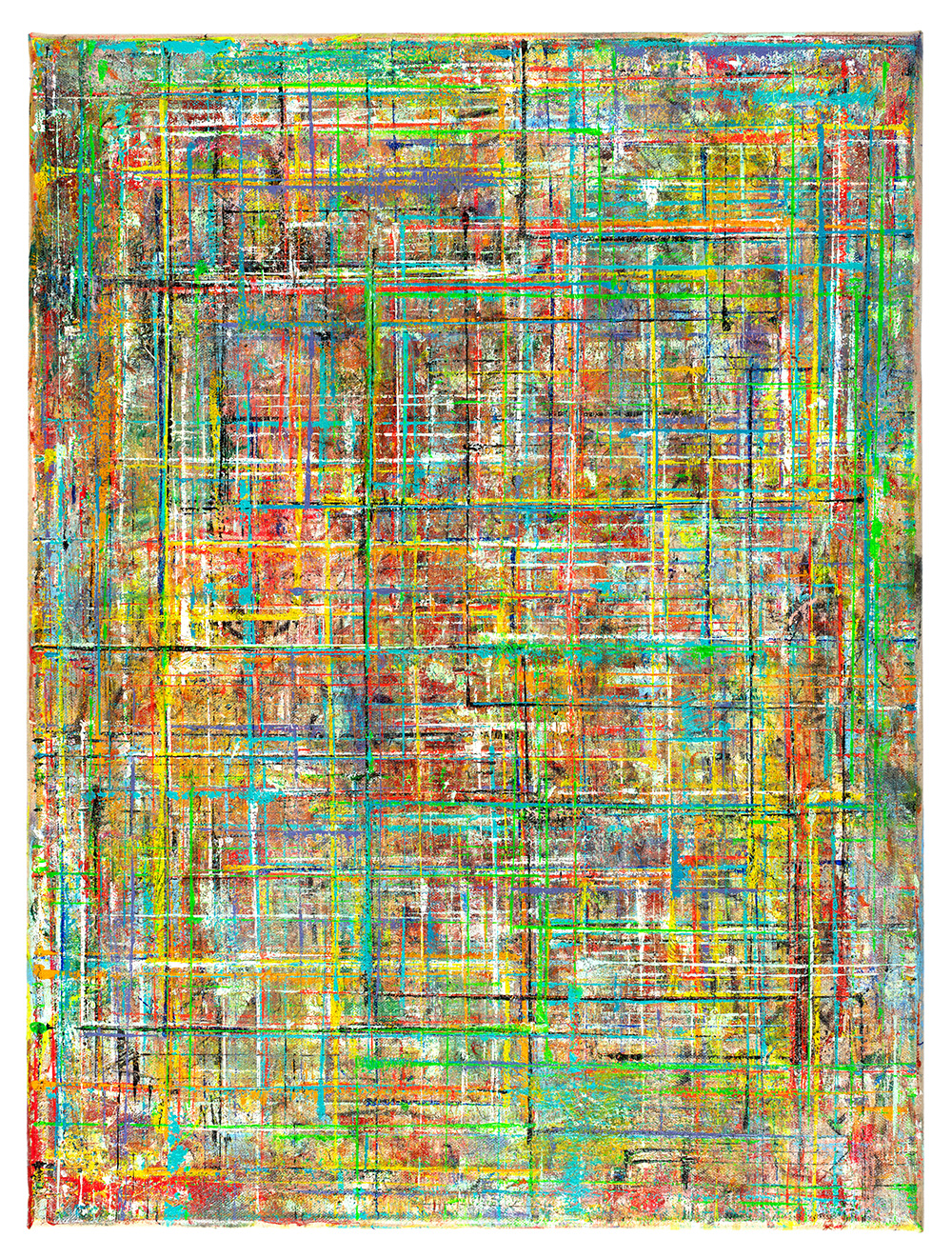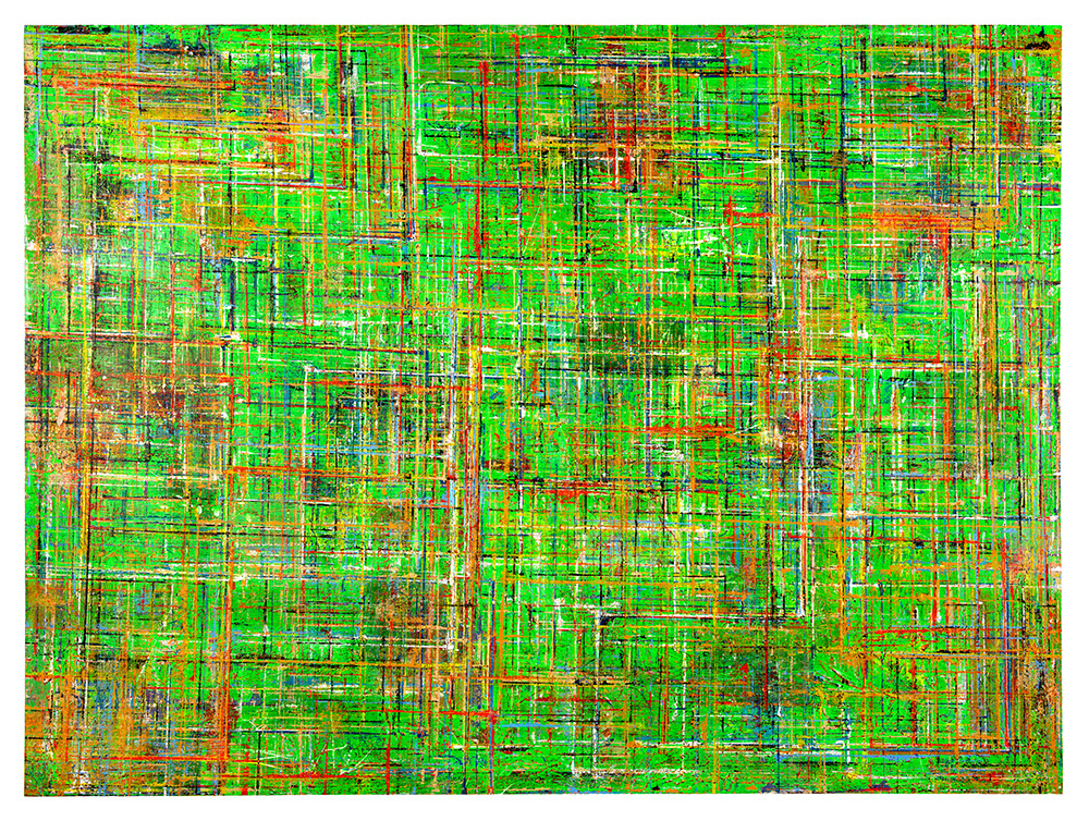 Gridlock is an exploration of layered grids and vibrant colors, emerging from Allan’s fascination with the tension between structure, freedom, and joy amid chaos. The series echoes woven fabric, aerial city views, flickering digital screens, and deteriorating building facades. The abundance of layers creates paintings that invite the viewer to linger and feel the interplay of color against color, with infinite possibilities for exploration and discovery.